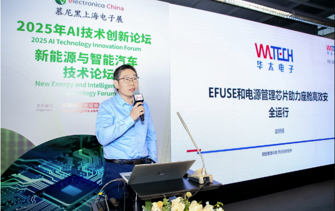 在新能源汽車技術論壇中,華太模擬產品線高級市場總監(jiān)發(fā)表《EFUSE 和電源管理芯片助力智能座艙高效安全運行》主題演講,深度解析華太芯片如何提升智能汽車系統(tǒng)的安全性與響應效率。